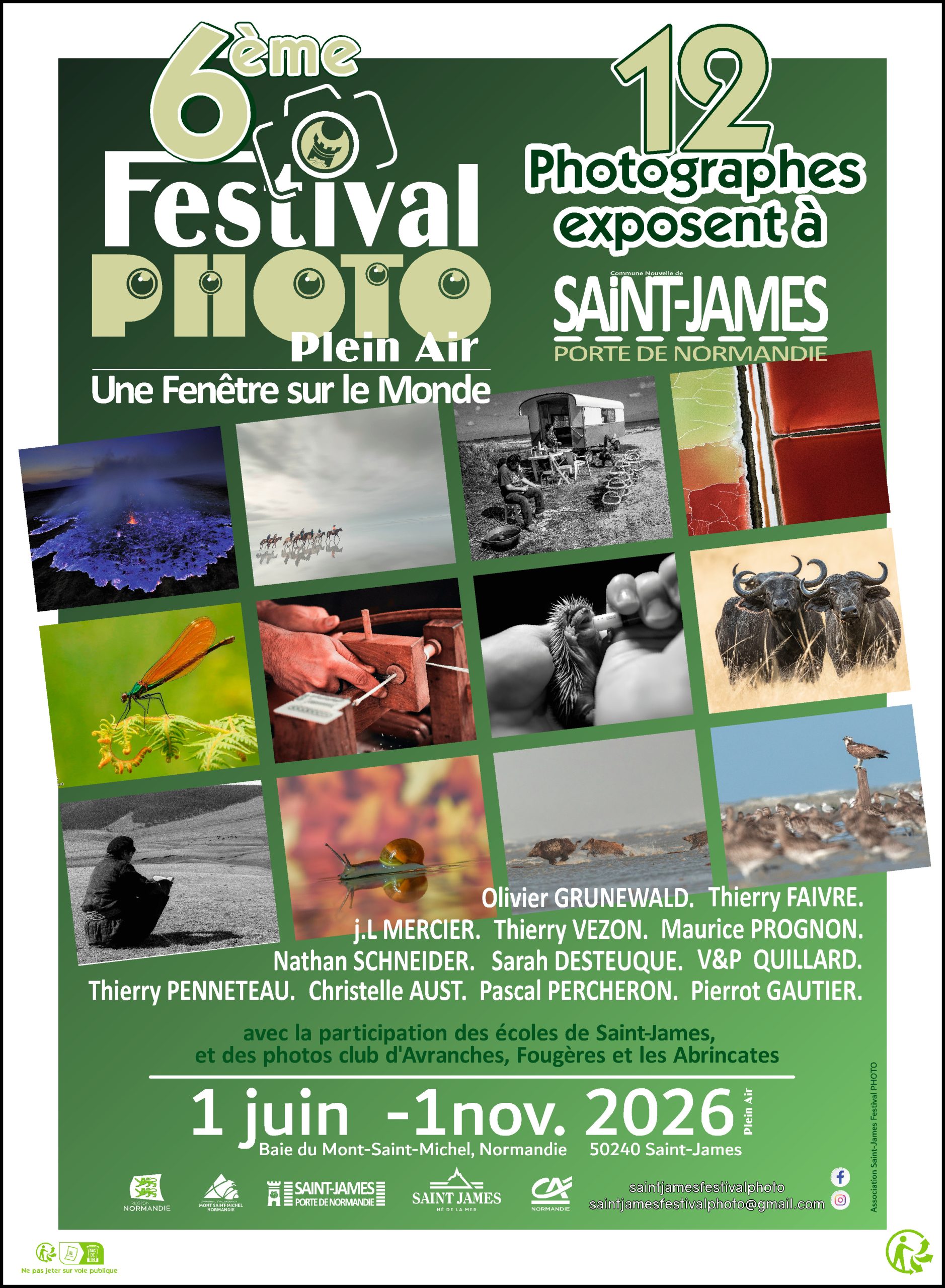 Exposition de plus de 250 clichés de 12 photographes dans les rues de la ville de Saint-James sur le thème "Une fenêtre sur le Monde", déambulation d'environ 1h30/2h Gratuit Organisée par l'association Saint-James Festival Photo