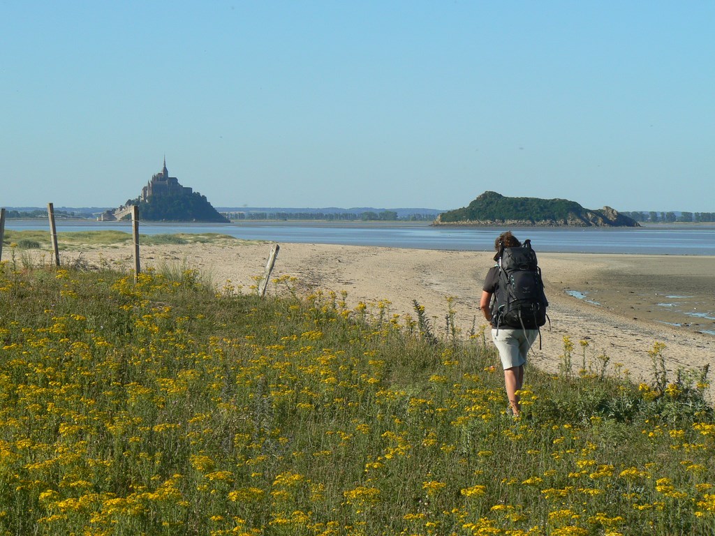 Exposition sur les chemins de Saint-Michel à découvrir en l'église Saint-Jacques du 17 avril au 17 mai. Cette exposition thématique relatant l'épopée du pèlerinage vers le sanctuaire du Mont Saint-Michel a été réalisé par un historien local passionné, Vincent Juhel, président de l'association des Chemins de Mont-Saint-Michel. Elle se compose d'une quinzaine de panneaux à l'approche topographique, scientifique et historique. Organisée par le service Patrimoine de la Communauté d'Agglomération Mont Saint-Michel - Normandie. Crédit photo : Association Les Chemins du Mont Saint-Michel