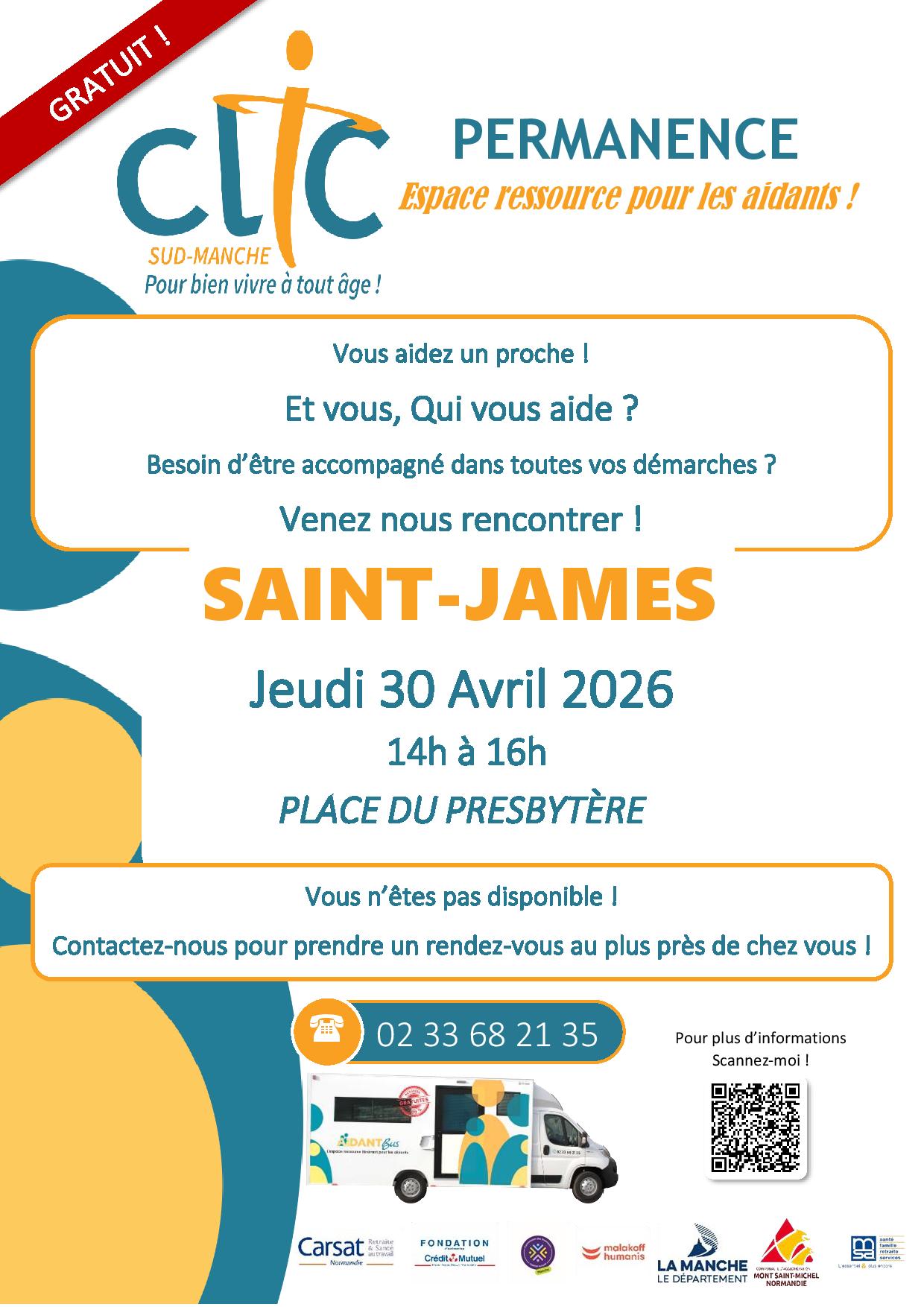 Vous aidez un proche en perte d’autonomie ! Le Clic du Sud-Manche vous propose une permanence où, vous serez écoutés, informés, orientés et accompagnés dans vos démarches.