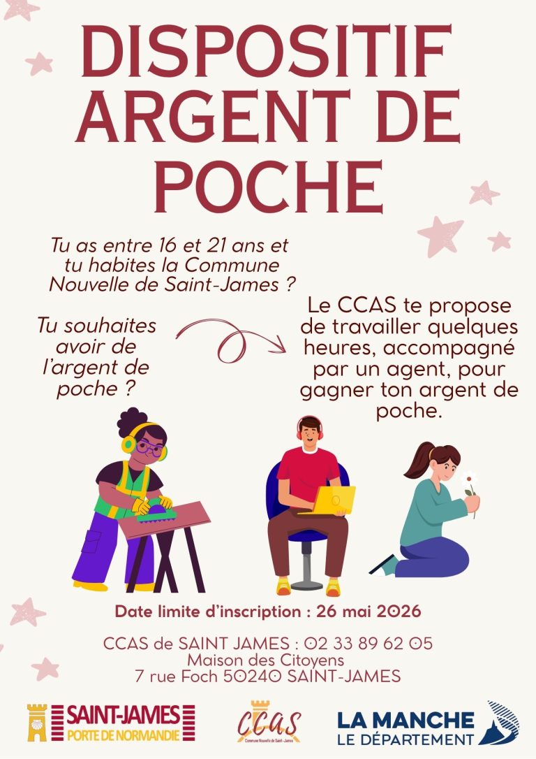 Le CCAS de la Commune Nouvelle de Saint-James propose, tous les ans, le dispositif Argent de poche.